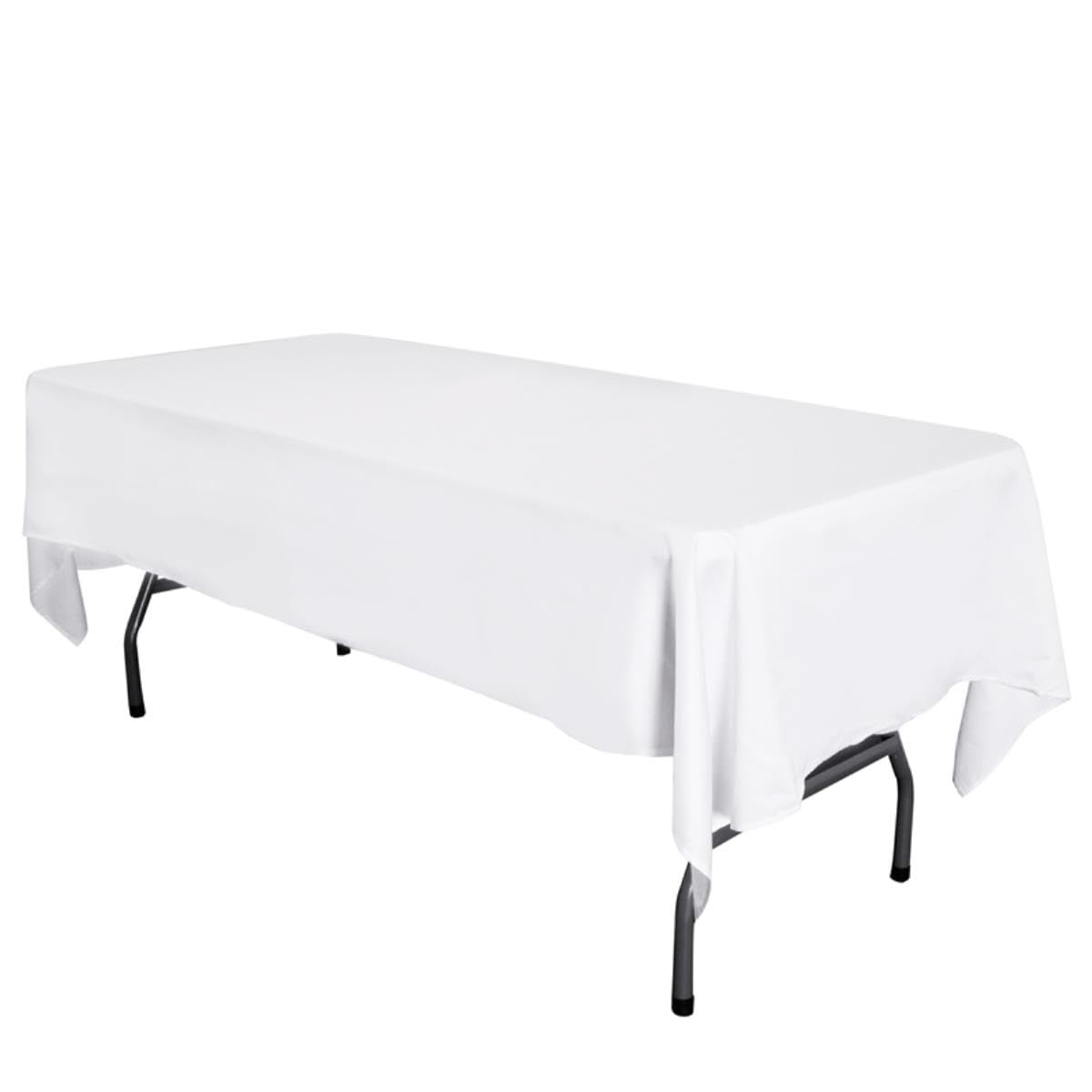 The white tablecloth is a half drop. It goes halfway down to the floor